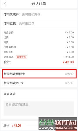 3、在订单确认界面,选择预付卡作为支付方式即可完成。