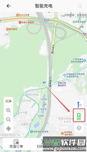 2、进入充电桩页面后,点击下方明显的充电桩图标,即可查看附近可用充电站。