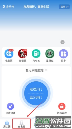 1、打开e家安APP,在首页底部找到充电桩入口,点击进入。