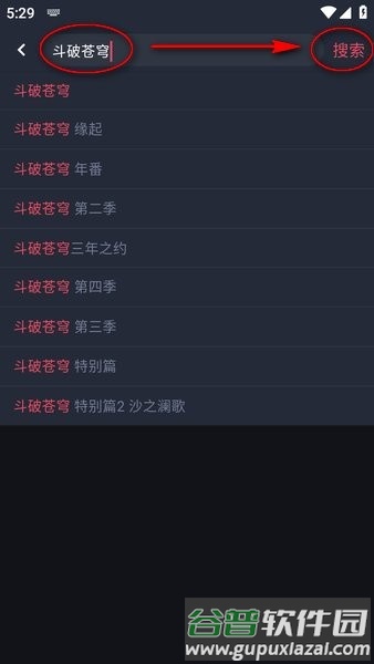 2、输入想看的动漫名称,点击右侧的“搜索”按钮进行查询。