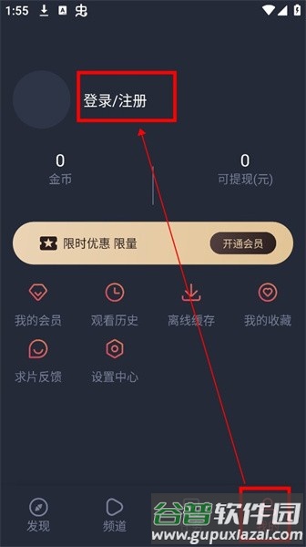 1、点击底部“我的”选项卡,进入后选择“登录/注册”。
