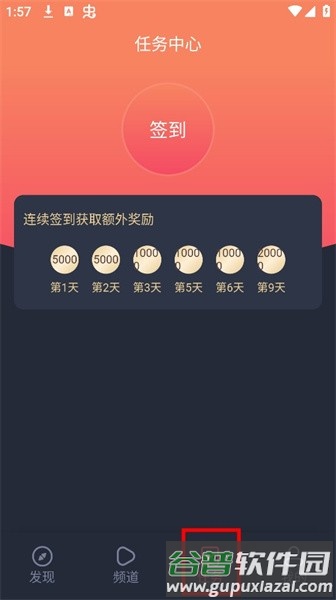 3、成功登录账号后,在“任务”中心内完成每日签到。