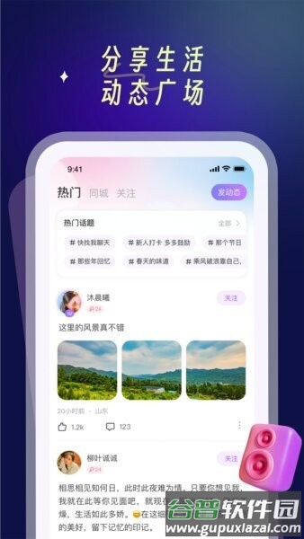 第六步:发布动态:在动态广场分享生活内容,吸引更多志同道合的朋友互动;