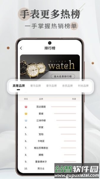 2、多维度手表排行榜展示。