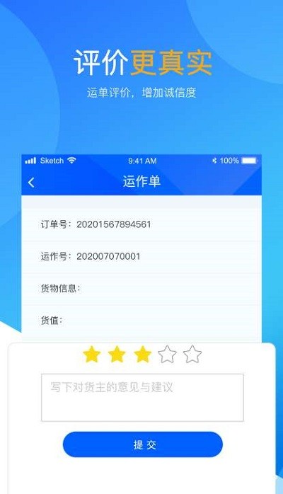 平台设置了待运输、找货、车源发布、车辆添加等核心版块,运输全流程节点信息会实时同步给司机,既能帮司机提升日常运输效率,也能拓宽增收渠道。还搭载了运单智能推送、在线接单、在线找货、车源信息发布、地图导航、运输跟踪、车辆北斗定位、装卸货拍照等实用功能。