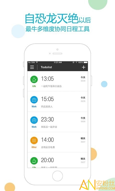 免费的生活和工作列表管理应用,通过设置任务分类,可方便的在工作和生活日程安排中进行切换
