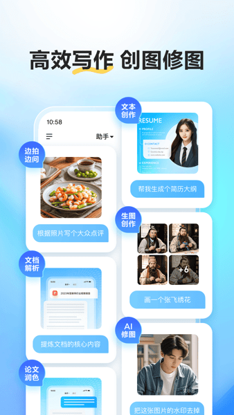能提供一站式文创相关体验,需要写汇报材料、美食点评,或是制作vlog脚本,都能满足对应的创作需求。它的绘画能力经过大幅升级,可以轻松生成各类风格的图片,帮你实现各类创意想法,有效提升内容创作的效率;