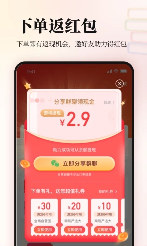 【下单返红包】每日首单完成后自动返还红包,邀请好友助力可获得额外惊喜
