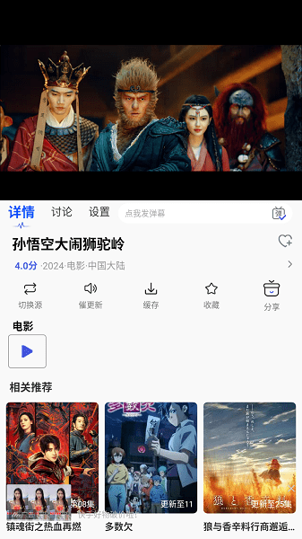 支持影视内容分享功能,大家可以通过多种社交渠道,把喜欢的影片分享给身边的亲友,看完之后还能一起讨论剧情走向,让追剧的快乐成倍增加;