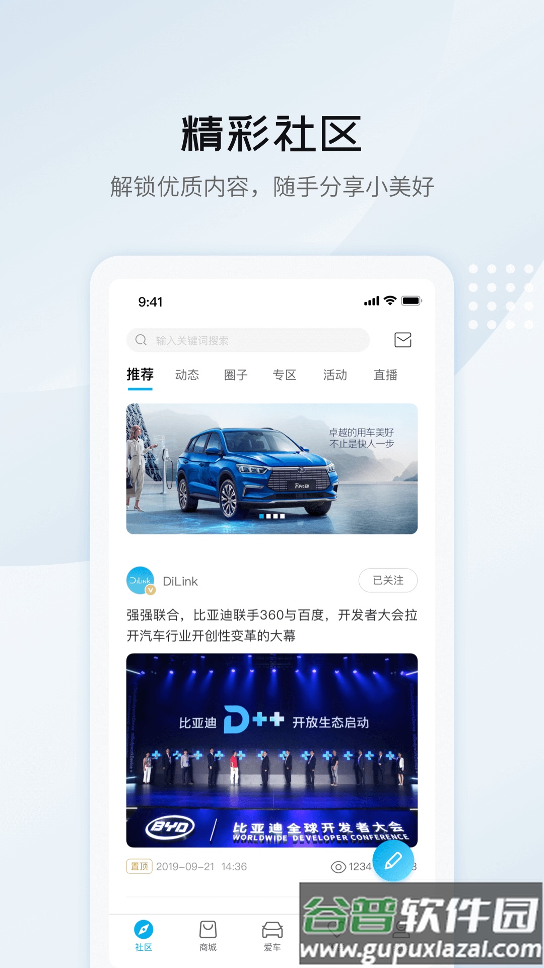 互动社区让用户了解最新比亚迪车型信息,还能在线和车友交流心得,参与各种线下活动,构建一个属于车主的专属圈子。