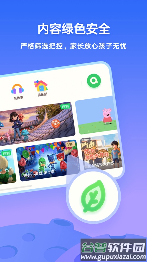 平台聚焦儿童智力开发及健康成长,设置动画、儿歌、英语、故事、早教、电影、游戏等多个内容板块,引入BBC、迪士尼、尼克、Babyfirst等多家平台的优质中英双语内容,全程陪伴孩子幸福成长;