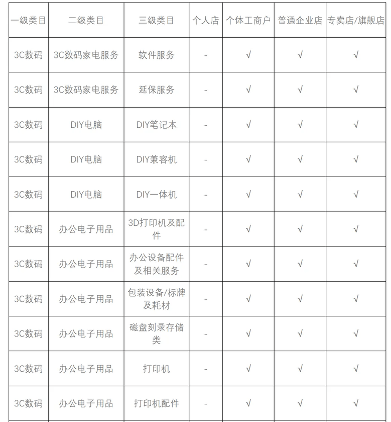 确定类目:根据后台提示选择一个大类目,后期可增加类目,但需重新审核;特殊类目需要相应的资质,如食品需要食品经营许可证,保健品需要医疗资质等;