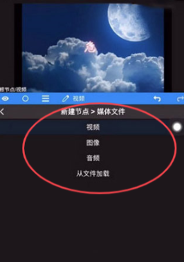 在新建节点后,依次点击【媒体文件】>【视频选项】;