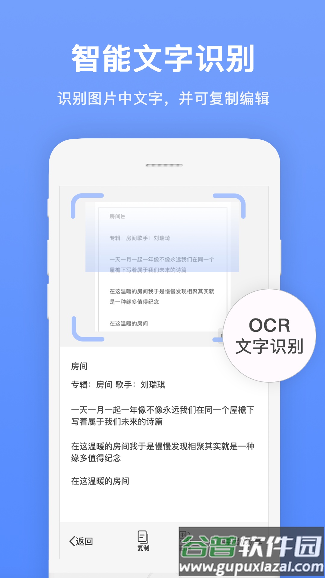 2、图片识别功能,可直接从手机相册选取已有图片,快速提取图片内的文字信息;