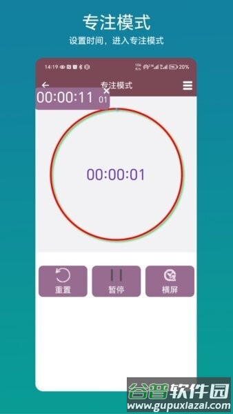 在主界面选择“专注模式”,设定时间并启用密码保护,即可进入简化且防干扰的计时界面。