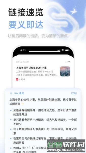 软件支持对外部链接进行要点速览,用户通过简单操作即可预览网页内容的精华摘要,无需跳转浏览器,提升了信息获取的效率。这在日常的知识学习和资讯浏览中显得尤为实用。