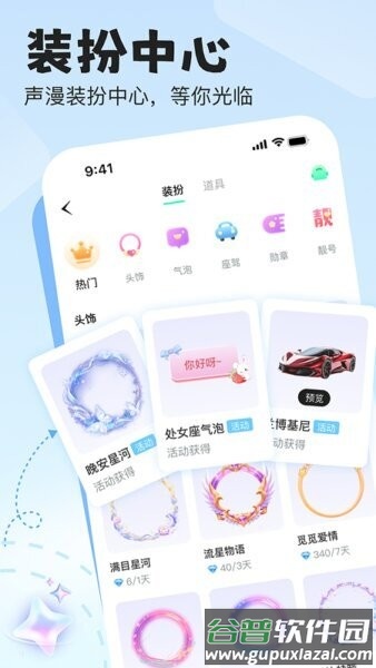 声漫时光软件是一款主打语音交友与互动娱乐的社交应用,致力于为用户构建一个温暖而有趣的交流环境。它通过丰富的功能设计,解决了现代社交中沟通形式单一、声音情感传递不足的痛点,特别适合热爱声音社交、希望结识有趣灵魂的年轻用户。在界面布局上,声漫时光采用清新明快的色彩搭配和清晰的板块划分,首页整合了消息、语音派对、装扮中心等核心栏目,功能入口安排合理,用户可以快速跳转到不同的社交场景。