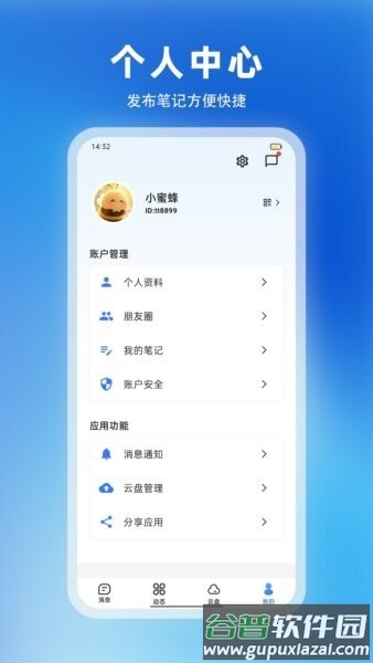 个人中心不仅包含账户信息维护,还支持笔记的发布与管理。用户可以快速创建内容,记录生活、工作灵感或备忘事项。该模块操作便捷,界面一目了然,帮助用户高效管理个人资料与创作内容,提升使用体验的同时增强软件的实用价值。