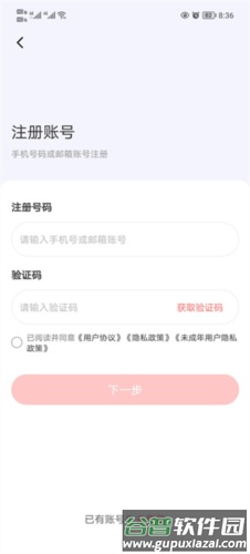 2、输入用于注册的手机号码,并填写收到的短信验证码进入下一步。