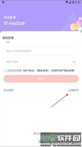 1、下载安装软件后打开,在登录界面选择注册新账号。