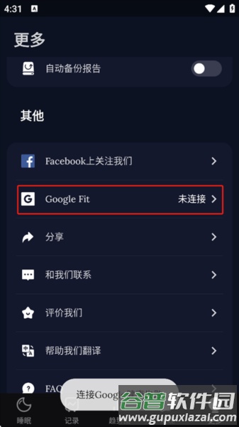 在“更多”标签页中,找到“Google Fit”选项并点击“连接”。