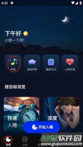 聆听舒缓摇篮曲;若受失眠困扰,可在睡前聆听高品质的放松音乐,安抚纷乱的思绪。多种睡眠声音有助于加速入睡过程。