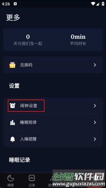 打开睡眠监控应用程序,进入“更多”选项,找到“闹钟设置”。