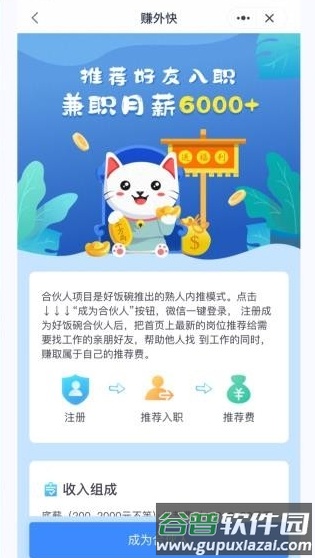 1、设有赚取额外收入板块,用户推荐好友入职即可获得现金奖励;