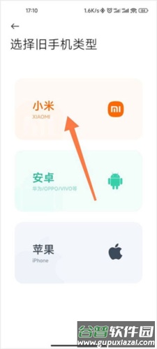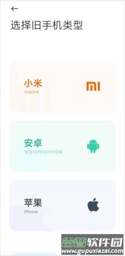 3、根据旧手机品牌选择【小米】或其他对应类型;