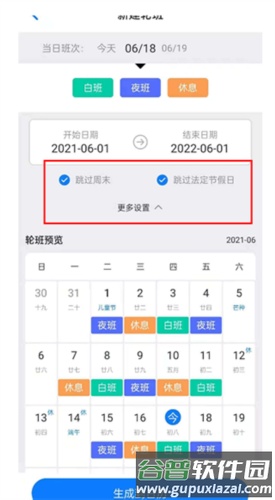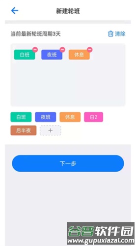 2、设置最小轮班周期,如两班倒可以选择白班、夜班、休息。如有需要,可以新建班次;