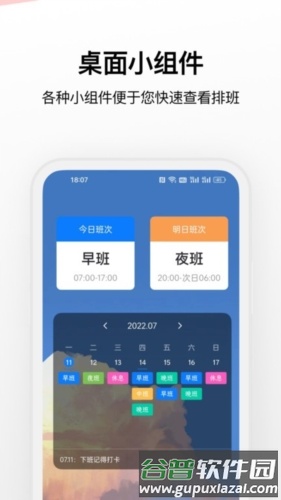 支持在桌面添加今日/明日班次、周视图与月视图的小组件。