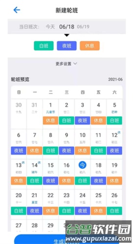 4, 周期轮班自动排班: 根据设定好的轮换周期,自动生成全年排班表。