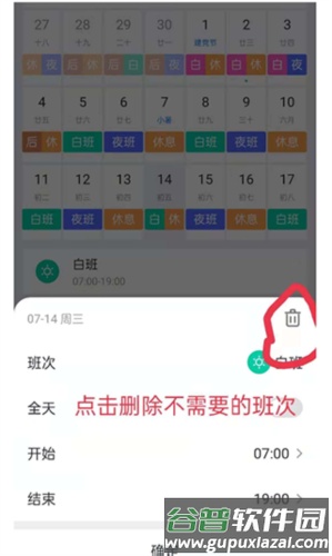 3、设置当日班次,即今天是轮班周期中的哪个班次。注意这里可以选择其他日期。(左右滑动 日期即可改变当前日期) ;