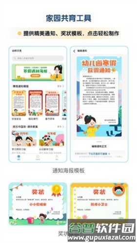 家园通平台支持园所一键发布通知、管理班级相册、组织亲子活动等,减轻教师工作负担;家庭端可记录孩子成长点滴、学习育儿知识、完成亲子共学任务,助力家庭教育实施。