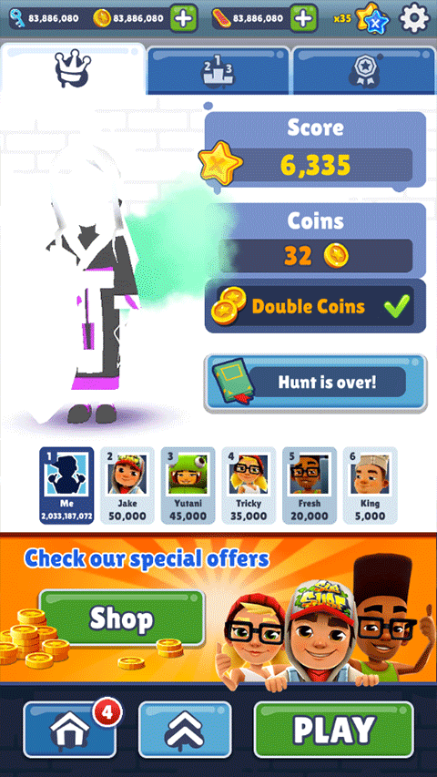 2、提供丰富角色选择和滑板装备,通过收集金币、躲避障碍、使用道具来创造高分记录。