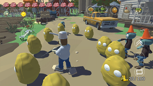 植物大战僵尸戴夫有枪手机版将经典塔防玩法彻底颠覆,这次玩家不再是旁观者,而是化身手持武器的疯狂戴夫亲自上阵。游戏采用全新3D视角打造,通过虚拟摇杆控制角色移动,用各种枪械对抗成群的僵尸。你既能在花园里埋设地雷,也能培育熟悉的植物伙伴协同作战,超大开放地图让战斗充满变数。这款创意十足的改版作品加入了武器系统和实时对战元素,喜欢这种创新玩法的朋友快来谷普下载体验吧。