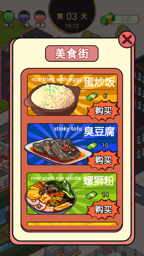 4、三项生存指标需要时刻关注,合理分配收入维持体力、心情和健康值