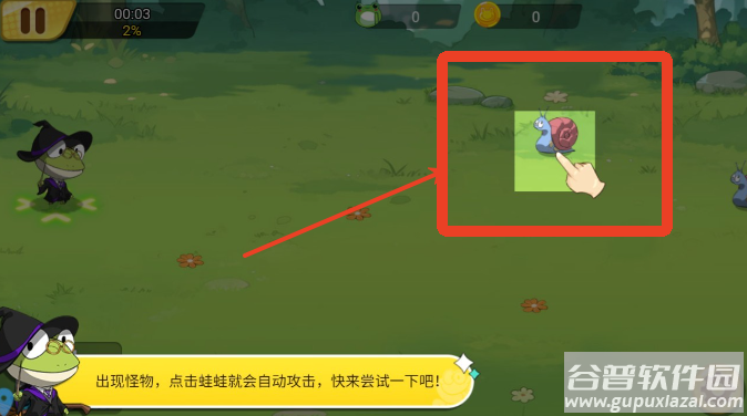 2、进入战斗界面后,点击出现的怪物青蛙会自动发起攻击;
