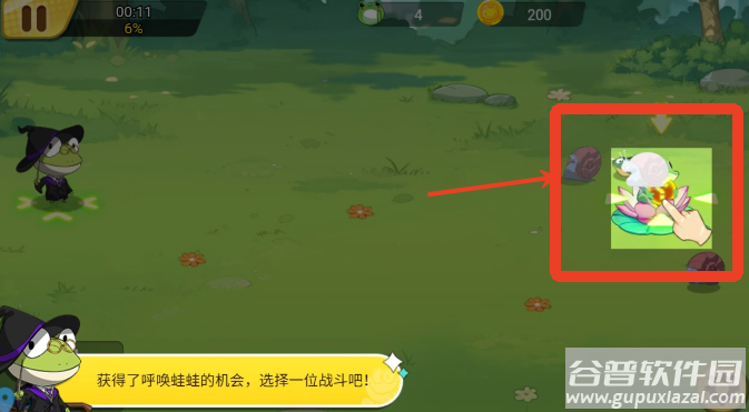 3、战斗过程中会获得召唤机会,可以挑选新的青蛙加入战斗;
