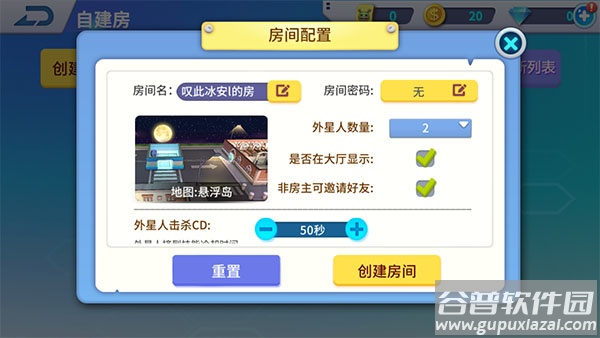 3、自定义房间参数,设置游戏人数和胜利条件等;