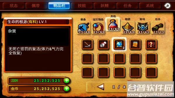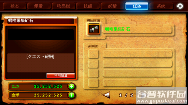 3、背包管理(INVEN)。包含六个子分类:EQUIPMENT显示当前穿戴装备;ORNAMENT专用于项链、戒指等饰品栏;MISC存放药水与技能符文;MATERIAL收集合成素材,采矿获得的晶石也归于此栏;TITLE成就系统会解锁属性加成称号;QUEST任务物品有独立存储空间。