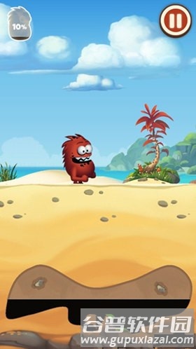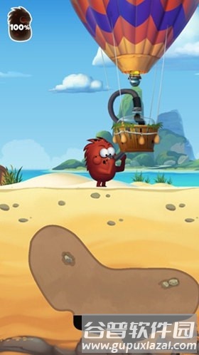 4、屏幕左上角会有小怪物吸收石油的程度,当收集满以后,热气球就会出现,我们将走过去就能将石油吐出去,这样就完成任务了;