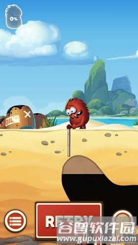 1、采油小怪2游戏中小怪物出来的时候,手里会拿着一个可以伸缩的导管,有些像孙悟空的如意金箍棒一样,我们来到有石油的上方,按住屏幕中出现的按钮,就可以让导管边长;