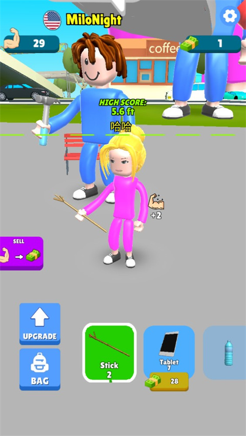 2、核心玩法是通过快速点击让人物完成举重训练,每次点击都会增加肌肉强度