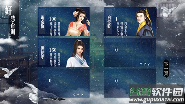 5、通过好感度系统可查看与各NPC的亲疏关系,影响剧情触发条件;