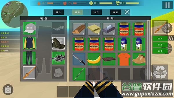 3、击杀生物获取材料升级装备;