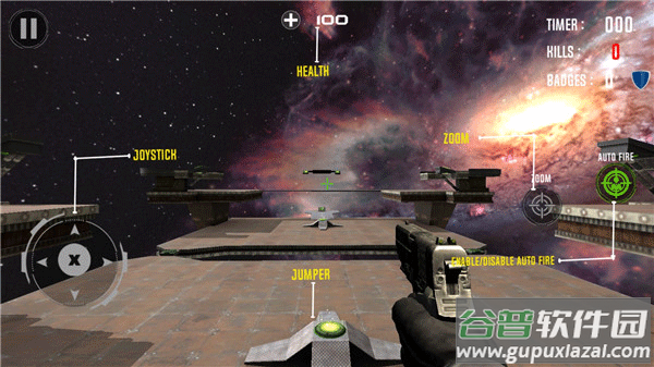 2、游戏的操作性比较强,在规定的时间内消灭的坏人越多得到的金币就会越多,而且还会有排名,3D空间感增加了游戏的难度,根据红色箭头来判断敌人所在的位置,然后迅速瞄准敌人,可以自动射击,也可以手动射击;