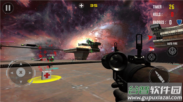 2、游戏的操作性比较强,在规定的时间内消灭的坏人越多得到的金币就会越多,而且还会有排名,3D空间感增加了游戏的难度,根据红色箭头来判断敌人所在的位置,然后迅速瞄准敌人,可以自动射击,也可以手动射击。