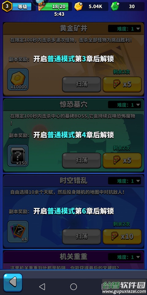 玩家们在普通模式下到达第3章后便可以开启游戏副本区了;