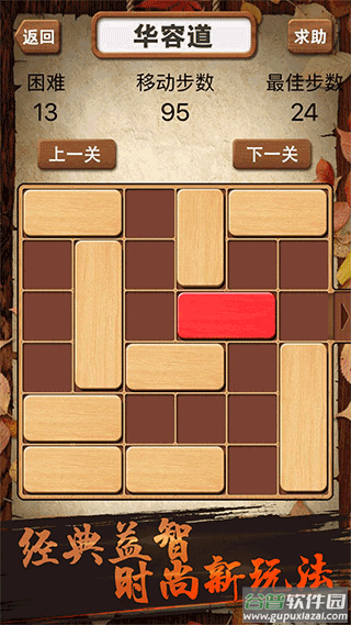华容道积木拼图是一款经典烧脑的益智游戏,玩家需要通过巧妙移动木块,帮助红色方块找到出口路径。游戏采用简约木质纹理设计,搭配清新配色,视觉体验舒适自然。从入门到专家共设多个难度等级,每关都需要灵活运用空间思维,逐步解锁更复杂的谜题布局。通关后还能反复挑战刷新步数记录,特别适合喜欢逻辑推理的玩家,感兴趣的朋友快来谷普下载体验吧。